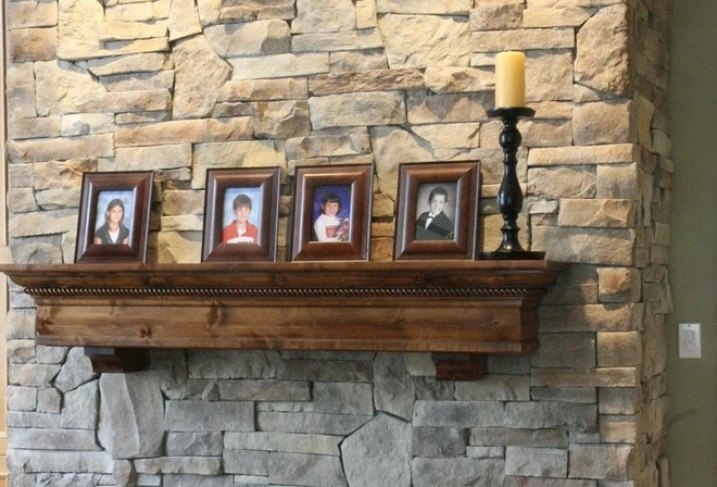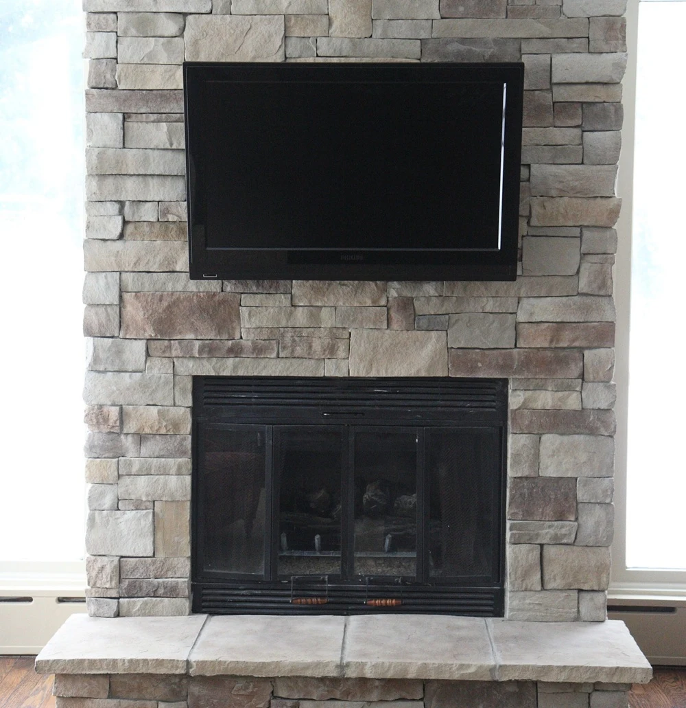 Our stone specialists transformed this basic drywall fireplace into a stunning entertainment centerpiece: