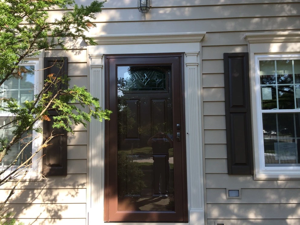 - Entry Enhancement: Transformed the basic entryway with a decorative ProVia door in deep brown. It featured ornamental glass and elegant pilasters and header trim, creating a distinctive focal point.