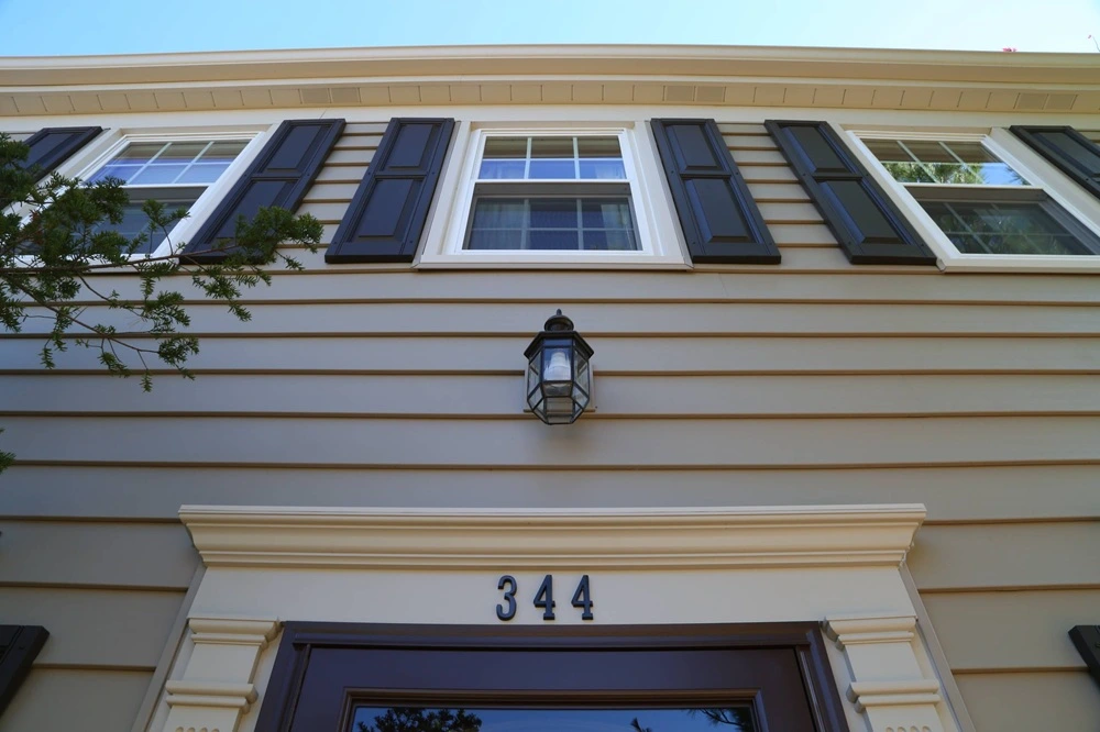 - Windows & Trim: Replaced outdated windows with energy-efficient Alside Sheffield models featuring bold white trim and contrasting black shutters that dramatically enhance the home's architectural definition.